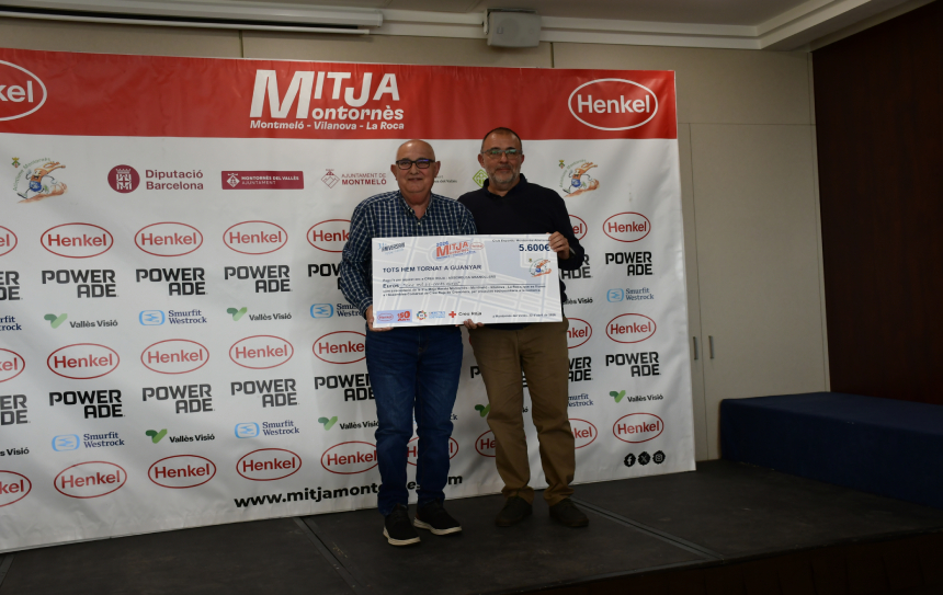 Més enllà dels reconeixements en matèria esportiva, també s’ha donat a conèixer la xifra final de la recaptació solidària, que enguany ha arribat als 5.600 euros. Aquesta quantitat prové de diverses iniciatives, com: els 2 euros del photocall solidari de Henkel, pel seu 150è aniversari; els beneficis de la Mini Solidària i una aportació dels dorsals de la Mitja, amb 2 euros de Henkel per cada inscrit. El xec s’ha lliurat al president de Creu Roja Granollers, Roman Barragan, amb la presència de Jaume Anguera, plant manager de Henkel Adhesive Technologies a Montornès.